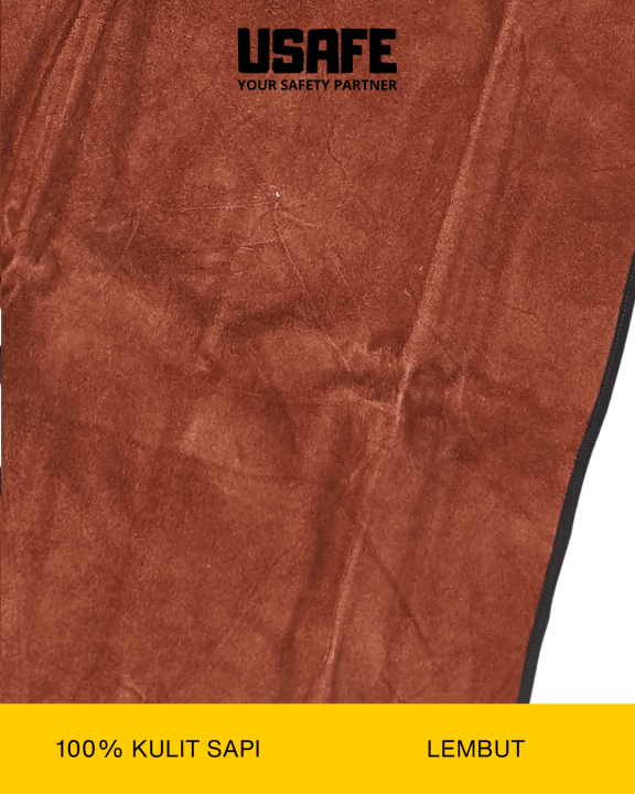 melindungi tubuh bagian depan (dada hingga paha) dari percikan api, percikan logam panas, dan panas tinggi selama proses pengelasan.