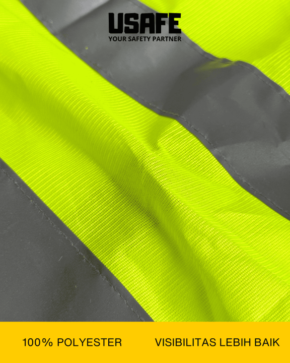 Rompi ini berfungsi sebagai Alat Pelindung Diri (APD) dengan bahan reflektif dan warna cerah untuk memastikan pekerja dikenali dan terhindar dari bahaya.